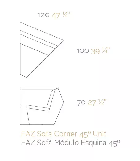 Vondom Faz Sofa, Modul links/rechtsDie von Ramón Esteve entworfene Kollektion Vondom Faz ist eine der emblematischsten Kollektionen des Unternehmens. Sie besticht durch ihr modulares Design und ihre Raffinesse und verkörpert Harmonie, Ruhe und Zeitlosigkeit durch mineralische und markante Formen. Faz verwandelt Umgebungen durch die einzigartige Kombination von Material und Licht und schafft so eine einhüllende und exklusive Atmosphäre. Maße (B × T × H) 121 × 100 × 70 cm Eigenschaften der Beleuchtungsvarianten: LED weiss (ausschließlich weiße Beleuchtung): - weiße LEDs 4000 - 4500 Kelvin- 720 - 2800 LM Max. (je nach Modell)- 16 - 72 W Max. (Modelle je nach Verfügbarkeit)- Netzgerat: 100-240 Volt / 50-6 0Hz- Energieeffizienzklasse: A- Schutzklasse: IP65 / für feuchte Bereiche geeignet.- 5 m langes, weißes Kabel LED-RGB: - Vielfarbige RGB-LEDs, 3 Weißtöne und 9 Farben (dunkelblau, hellblau, dunkelgrün, hellgrün, lila, flieder, rot, orange, gelb)- Farbwechsel durch Fernbedienung (433,92 MHz) / Reichweite: 10-15 m- 450 - 1100 LM Max. (je nach Modell)- 16 - 72 W Max. (je nach Modell)- Netzgerät: 100-240 Volt / 50-6 0Hz- Energieeffiziensklasse: A- Schutzklasse: IP65 / für feuchte Bereiche geeignet.- 5 m langes, weißes Kabel LED-RGB mit Akku: - Vielfarbige RGB-LEDs, 3 Weißtöne und 9 Farben (dunkelblau, hellblau, dunkelgrün, hellgrün, lila, flieder, rot, orange, gelb)- Farbwechsel durch Fernbedienung (433,92 MHz) / Reichweite: 10-15 m- 450 - 1100 Lumen Max. (je nach Modell)- 16 - 72 W Max. (je nach Modell)- inkl. Li-Ion-Batterie 5,2 V 19 Ah (Ladedauer: 4 Stunden, Betriebsdauer 5-6 Stunden, 500 Ladezyklen)- 19 Ah (je nach Verfügbarkeit) 12 V / 5-6 Stunden Autonomie/ Ladezeit 4 Stunden- 500 Zyklen / IN: 100-240 V AC / 50-60 Hz- Energieeffiziensklasse: A- Schutzklasse: IP65 / für feuchte Bereiche geeignet. RGB-LED mit WiFi (DMX - mit/ohne Akku): DMX ist ein digitales Steuerungsprotokoll, das in der Bühnen- und Veranstaltungstechnik zur Steuerung von der Lichttechnik eingesetzt wird. Es ermöglicht das Steuern einer oder mehrerer Leuchten über eine Steuereinheit. Für die Steuerung über WiFi ist ein Transmitter notwendig, der nicht im Lieferumfang enthalten ist. Sie haben die Möglichkeit zwischen zwei verschiedenen Transmittern zu wählen: Home WIFI DMX: Access Point über den Sie alle VONDOM Produkte mit Ihren IOS oder Android Gerät steuern können. Professional XLR DMX: XRL mit dem Sie alle VONDOM Produkte über ein Mischpult oder Computer steuern können. Sie benötigen nur einen Transmitter für die Steuerung Ihrer gesamten VONDOM Möbel, Pflanzgefäße und Leuchten.
