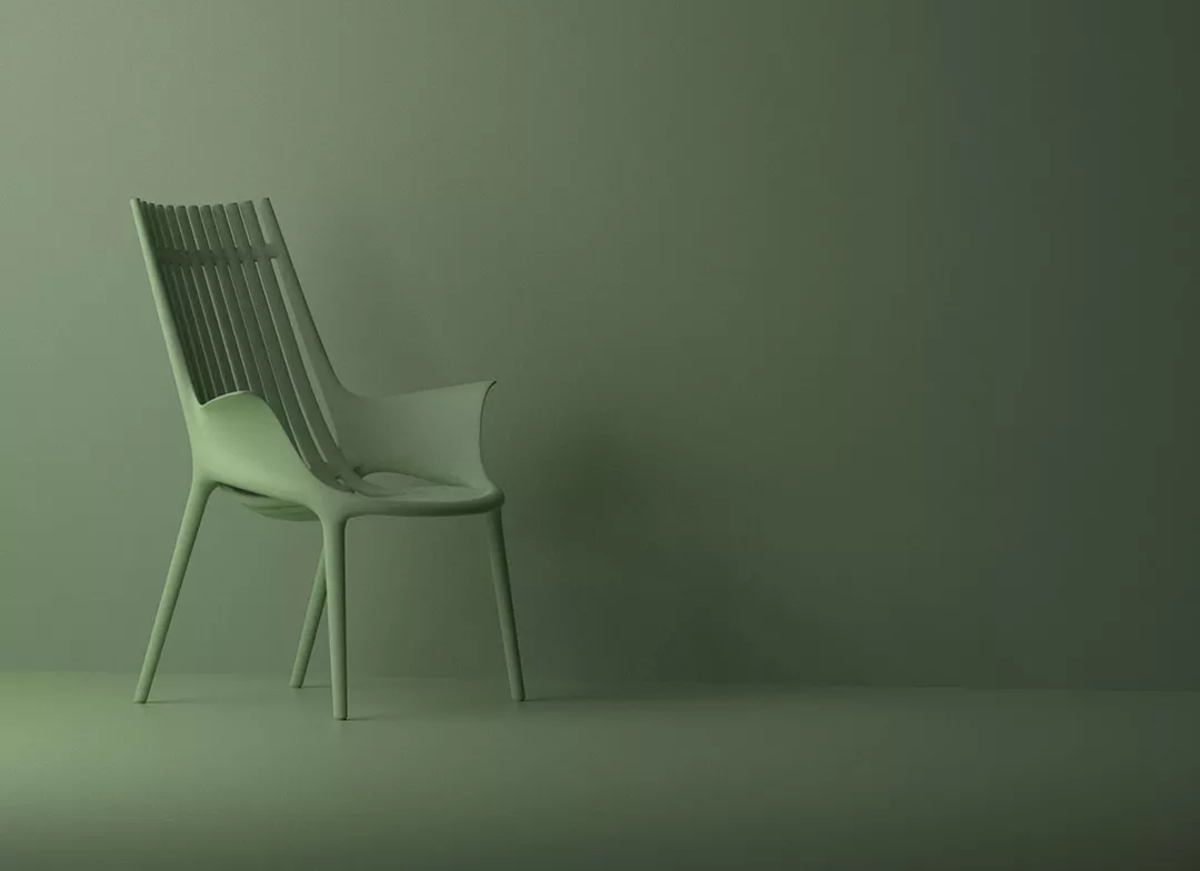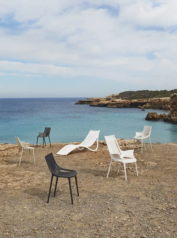 Die Kollektion IBIZA des Designers Eugeni Quitllet soll mit ihren geschwungenen Formen und wellenförmigen Elementen an Meeresmuscheln erinnern. Das Modell "Revolution" besteht vollständig aus recycelten Kunststoffen, wie z.B. Fischernetzen aus dem Mittelmeer.