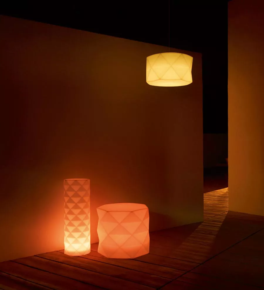 Vondom Marquis Outdoor Gartenleuchte Das Design der Kollektion Vondom Marquis des Designers José Manuel Ferrero ist von der Kunst des Diamantschleifens inspiriert. Das polygonale Design erinnert an die präzisen Facetten eines geschliffenen Diamanten. Die klaren und eleganten Formen erzeugen eine beeindruckende visuelle Wirkung. Die runden oder ovalen Gartenleuchten verleihen Außenbereichen eine elegante Dynamik und sorgen für eine weiche, entspannende Beleuchtung. Die Marquis Gartenleuchten werden im Rotationsgussverfahren aus Polyethylen hergestellt, was sie nicht nur besonders robust, sondern auch zu 100 Prozent recycelbar macht. Diese Leuchten setzen in jeder Umgebung markante Akzente. Die umfangreiche Vondom Marquis Kollektion verbindet innovatives Design mit Komfort und hoher Qualität, sowohl im Innen- als auch im Außenbereich. AUSFÜHRUNGEN Standard Verschiedene Farben, die Beleuchtung ist nicht integriert, die Oberfläche ist rau. Hochglanz Verschiedene Farben, hochglänzend lackiert die Beleuchtung ist nicht möglich, weil der Lack blickdicht ist. Maße (Ø × H) 60 × 50 cm Eigenschaften der Beleuchtungsvarianten: LED weiss (ausschließlich weiße Beleuchtung): - weiße LEDs 4000 - 4500 Kelvin- 720 - 2800 LM Max. (je nach Modell)- 16 - 72 W Max. (Modelle je nach Verfügbarkeit)- Netzgerät: 100-240 Volt / 50-6 0Hz- Energieeffizienzklasse: A- Schutzklasse: IP65 / für feuchte Bereiche geeignet.- 5 m langes, weißes Kabel LED-RGB: - Vielfarbige RGB-LEDs, 3 Weißtöne und 9 Farben (dunkelblau, hellblau, dunkelgrün, hellgrün, lila, flieder, rot, orange, gelb)- Farbwechsel durch Fernbedienung (433,92 MHz) / Reichweite: 10-15 m- 450 - 1100 LM Max. (je nach Modell)- 16 - 72 W Max. (je nach Modell)- Netzgerät: 100-240 Volt / 50-6 0Hz- Energieeffiziensklasse: A- Schutzklasse: IP65 / für feuchte Bereiche geeignet.- 5 m langes, weißes Kabel LED-RGB mit Akku: - Vielfarbige RGB-LEDs, 3 Weißtöne und 9 Farben (dunkelblau, hellblau, dunkelgrün, hellgrün, lila, flieder, rot, orange, gelb)- Farbwechsel durch Fernbedienung (433,92 MHz) / Reichweite: 10-15 m- 450 - 1100 Lumen Max. (je nach Modell)- 16 - 72 W Max. (je nach Modell)- inkl. Li-Ion-Batterie 5,2 V 19 Ah (Ladedauer: 4 Stunden, Betriebsdauer 5-6 Stunden, 500 Ladezyklen)- 19 Ah (je nach Verfügbarkeit) 12 V / 5-6 Stunden Autonomie/ Ladezeit 4 Stunden- 500 Zyklen / IN: 100-240 V AC / 50-60 Hz- Energieeffiziensklasse: A- Schutzklasse: IP65 / für feuchte Bereiche geeignet. RGB-LED mit WiFi (DMX - mit/ohne Akku): DMX ist ein digitales Steuerungsprotokoll, das in der Bühnen- und Veranstaltungstechnik zur Steuerung von der Lichttechnik eingesetzt wird. Es ermöglicht das Steuern einer oder mehrerer Leuchten über eine Steuereinheit. Für die Steuerung über WiFi ist ein Transmitter notwendig, der nicht im Lieferumfang enthalten ist. Sie haben die Möglichkeit zwischen zwei verschiedenen Transmittern zu wählen: Home WIFI DMX: Access Point über den Sie alle VONDOM Produkte mit Ihren IOS oder Android Gerät steuern können. Professional XLR DMX: XRL mit dem Sie alle VONDOM Produkte über ein Mischpult oder Computer steuern können. Sie benötigen nur einen Transmitter für die Steuerung Ihrer gesamten VONDOM Möbel, Pflanzgefäße und Leuchten.