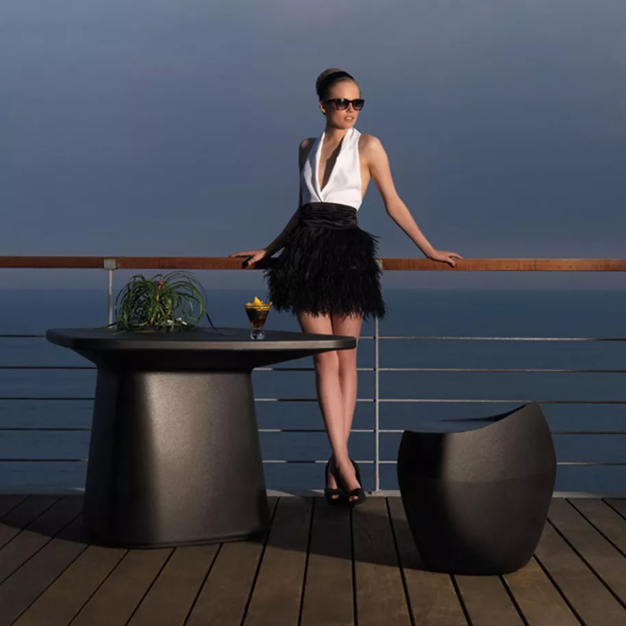 Die aus Polyethylenharz im Rotationsschmelzverfahren hergestellten Möbel sind strapazierfähig, pflegeleicht und vollständig recycelbar. Eine breite Farbpalette und verschiedene Beleuchtungsmöglichkeiten ermöglichen eine individuelle Gestaltung des Außenbereichs.