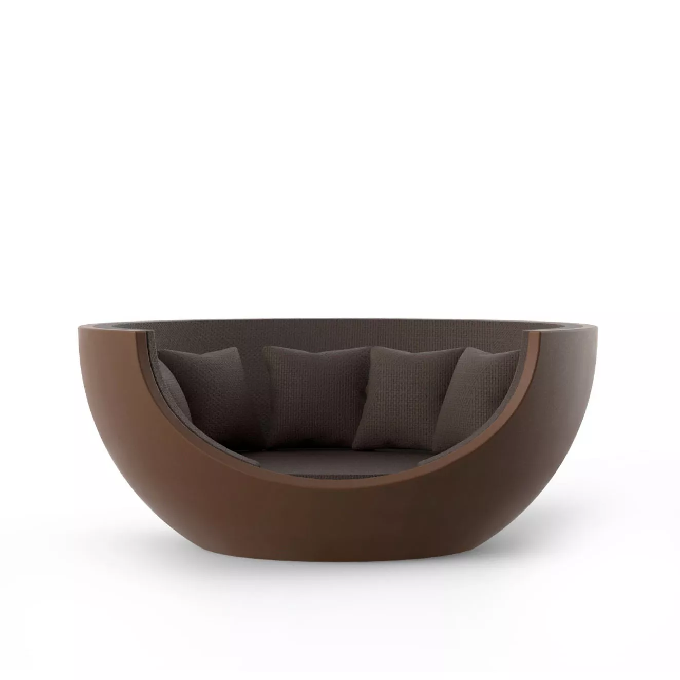 Das Hauptmerkmal des Moon Daybeds, das von Ramón Esteve für Vondom entworfen wurde, ist seine runde Form und das rotierende System, auf dem seine Basis ruht, wodurch sich das Möbelstück um seine eigene Achse drehen kann. Die Basis besteht aus zwei Halbkugeln und besteht aus rotationgeformtem Polyethylen mit der Möglichkeit der LED-Hintergrundbeleuchtung, während die Oberseite mit einem Polypropylengeflecht hergestellt ist. Dieses System ermöglicht die Filtration von Luft und dimmt das nach innen projizierte Licht, wodurch ein Raum erzeugt wird, der zum Entspannen einlädt und Moon zu einem idealen Design-Objekt für Freizeit- oder Chillout-Umgebungen macht