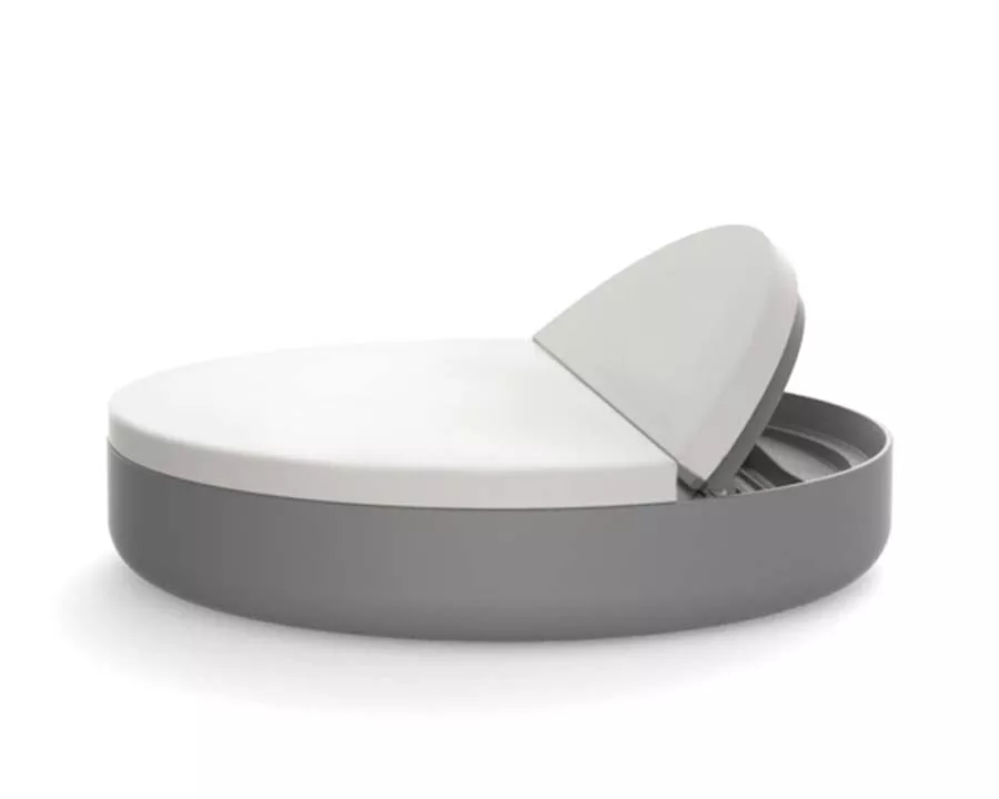 Das Hauptmerkmal des Ulm Daybeds, das von Ramón Esteve für Vondom entworfen wurde, ist seine runde Form und das rotierende System, auf dem seine Basis ruht, wodurch sich das Möbelstück um seine eigene Achse drehen kann. Die Basis besteht aus zwei Halbkugeln und besteht aus rotationgeformtem Polyethylen mit der Möglichkeit der LED-Hintergrundbeleuchtung, während die Oberseite mit einem Polypropylengeflecht hergestellt ist. Dieses System ermöglicht die Filtration von Luft und dimmt das nach innen projizierte Licht, wodurch ein Raum erzeugt wird, der zum Entspannen einlädt und Moon zu einem idealen Design-Objekt für Freizeit- oder Chillout-Umgebungen macht