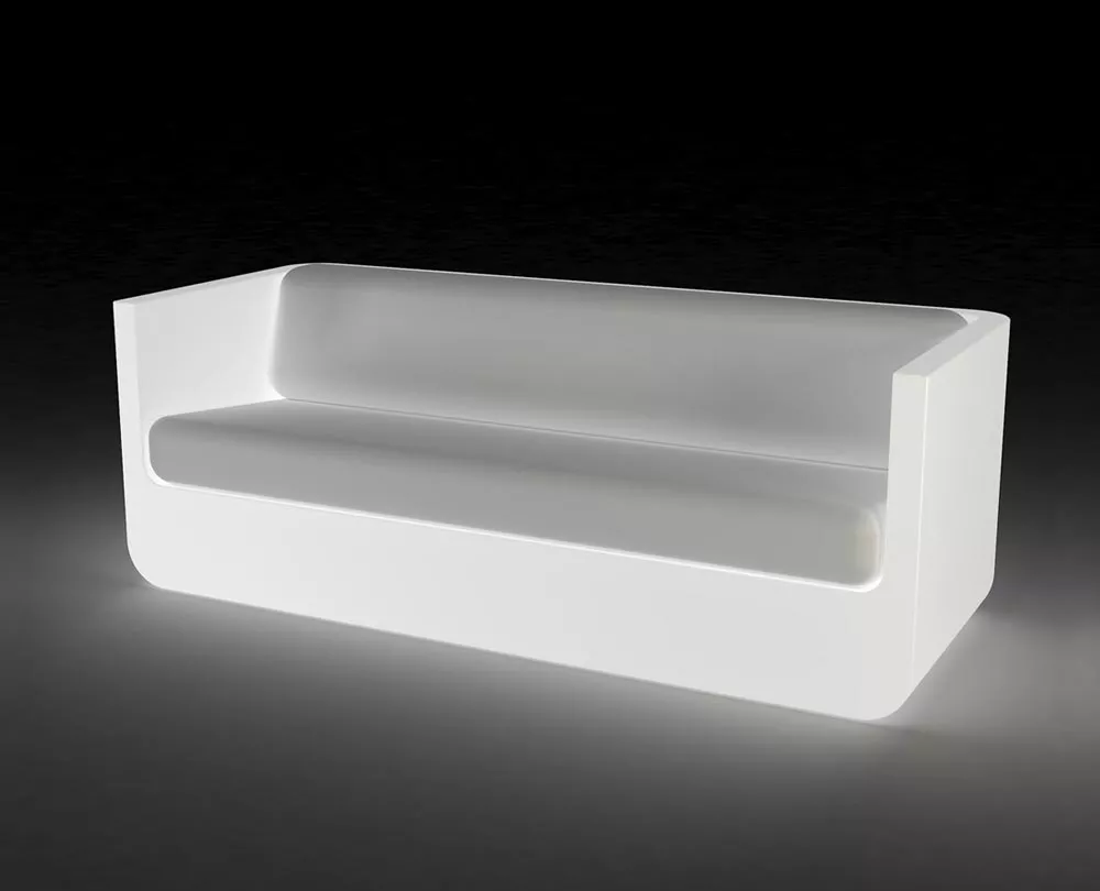 Das im Rotationsverfahren aus Polyethylenharz hergestellte Loungesofa ist zu 100 Prozent recycelbar und eignet sich sowohl für den Innen- als auch für den Außenbereich. Dank seiner widerstandsfähigen Materialien hält er extremen klimatischen Bedingungen stand und ist UV-beständig. Das Ulm Loungesofa ist in verschiedenen Ausführungen wie matt, lackiert oder farbig erhältlich und kann sogar mit integrierter Beleuchtung ausgestattet werden.