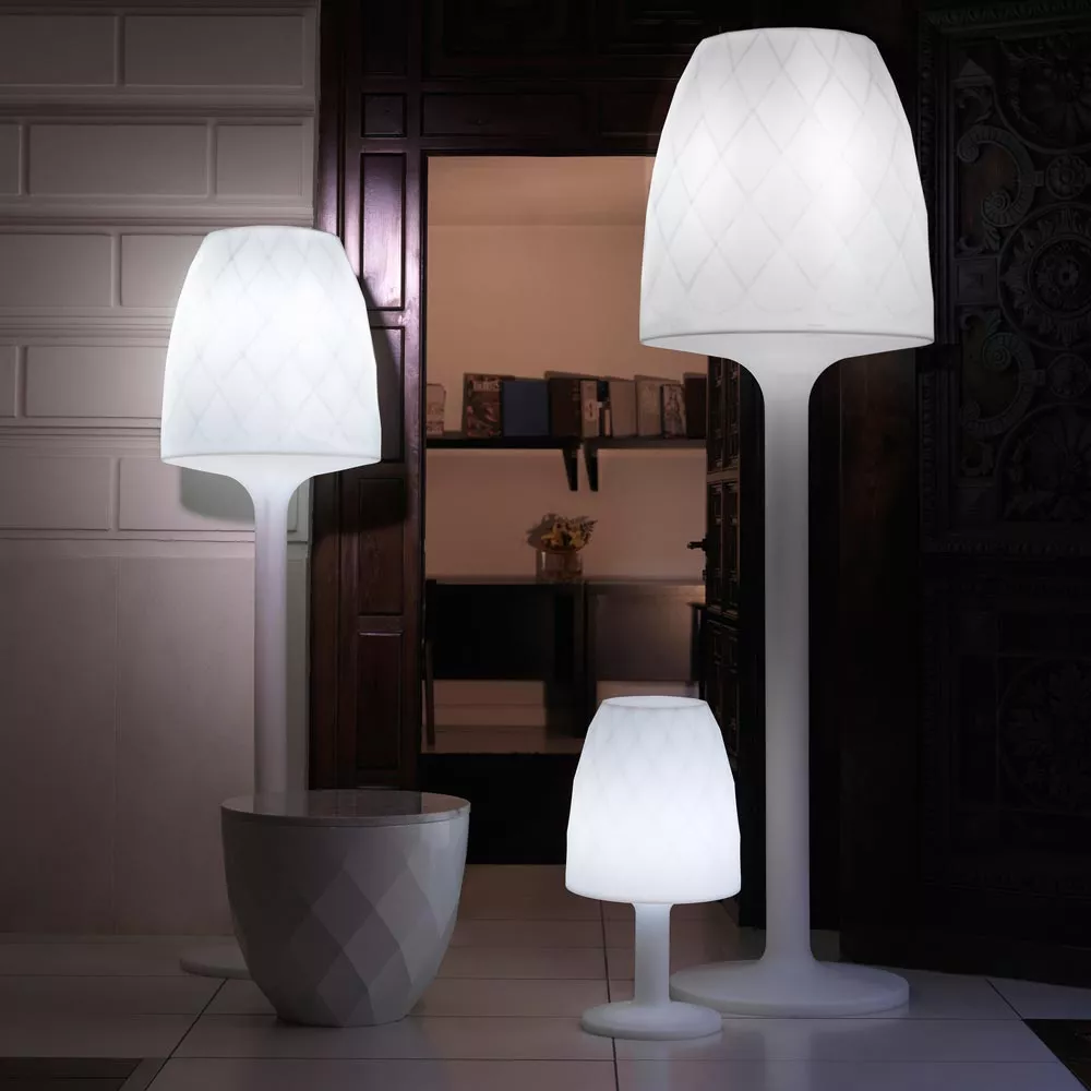 Vondom Outdoor Kollektion VASESentworfen von dem Designer JM Ferrero bietet eine breite Auswahl an beleuchteten Gartenmöbel: Lampen, Tische und Pflanzgefäße. Diese elegante Möbelstücke sind für Outdoor sowie Indoor Einsatz bestens geeignet. Funktionalität und Einzigartigkeit zeichnen diese Kollektion aus. Hoher Qualitätsgrad ist durch die Verwendung von hochwertigen Materialien, den Einsatz von Rotationsgussverfahren und der LED-Technologie gewährleistet. AUSFÜHRUNGEN Standard Verschiedene Farben, die Beleuchtung ist nicht integriert, die Oberfläche ist rau. Hochglanz Verschiedene Farben, hochglänzend lackiert die Beleuchtung ist nicht möglich, weil der Lack blickdicht ist. Maße (Ø × H) 65 × 100 cm Eigenschaften der Beleuchtungsvarianten: LED weiss (ausschließlich weiße Beleuchtung): - weiße LEDs 4000 - 4500 Kelvin- 720 - 2800 LM Max. (je nach Modell)- 16 - 72 W Max. (Modelle je nach Verfügbarkeit)- Netzgerät: 100-240 Volt / 50-6 0Hz- Energieeffizienzklasse: A- Schutzklasse: IP65 / für feuchte Bereiche geeignet.- 5 m langes, weißes Kabel LED-RGB: - Vielfarbige RGB-LEDs, 3 Weißtöne und 9 Farben (dunkelblau, hellblau, dunkelgrün, hellgrün, lila, flieder, rot, orange, gelb)- Farbwechsel durch Fernbedienung (433,92 MHz) / Reichweite: 10-15 m- 450 - 1100 LM Max. (je nach Modell)- 16 - 72 W Max. (je nach Modell)- Netzgerät: 100-240 Volt / 50-6 0Hz- Energieeffiziensklasse: A- Schutzklasse: IP65 / für feuchte Bereiche geeignet.- 5 m langes, weißes Kabel LED-RGB mit Akku: - Vielfarbige RGB-LEDs, 3 Weißtöne und 9 Farben (dunkelblau, hellblau, dunkelgrün, hellgrün, lila, flieder, rot, orange, gelb)- Farbwechsel durch Fernbedienung (433,92 MHz) / Reichweite: 10-15 m- 450 - 1100 Lumen Max. (je nach Modell)- 16 - 72 W Max. (je nach Modell)- inkl. Li-Ion-Batterie 5,2 V 19 Ah (Ladedauer: 4 Stunden, Betriebsdauer 5-6 Stunden, 500 Ladezyklen)- 19 Ah (je nach Verfügbarkeit) 12 V / 5-6 Stunden Autonomie/ Ladezeit 4 Stunden- 500 Zyklen / IN: 100-240 V AC / 50-60 Hz- Energieeffiziensklasse: A- Schutzklasse: IP65 / für feuchte Bereiche geeignet. RGB-LED mit WiFi (DMX - mit/ohne Akku): DMX ist ein digitales Steuerungsprotokoll, das in der Bühnen- und Veranstaltungstechnik zur Steuerung von der Lichttechnik eingesetzt wird. Es ermöglicht das Steuern einer oder mehrerer Leuchten über eine Steuereinheit. Für die Steuerung über WiFi ist ein Transmitter notwendig, der nicht im Lieferumfang enthalten ist. Sie haben die Möglichkeit zwischen zwei verschiedenen Transmittern zu wählen: Home WIFI DMX: Access Point über den Sie alle VONDOM Produkte mit Ihren IOS oder Android Gerät steuern können. Professional XLR DMX: XRL mit dem Sie alle VONDOM Produkte über ein Mischpult oder Computer steuern können. Sie benötigen nur einen Transmitter für die Steuerung Ihrer gesamten VONDOM Möbel, Pflanzgefäße und Leuchten.