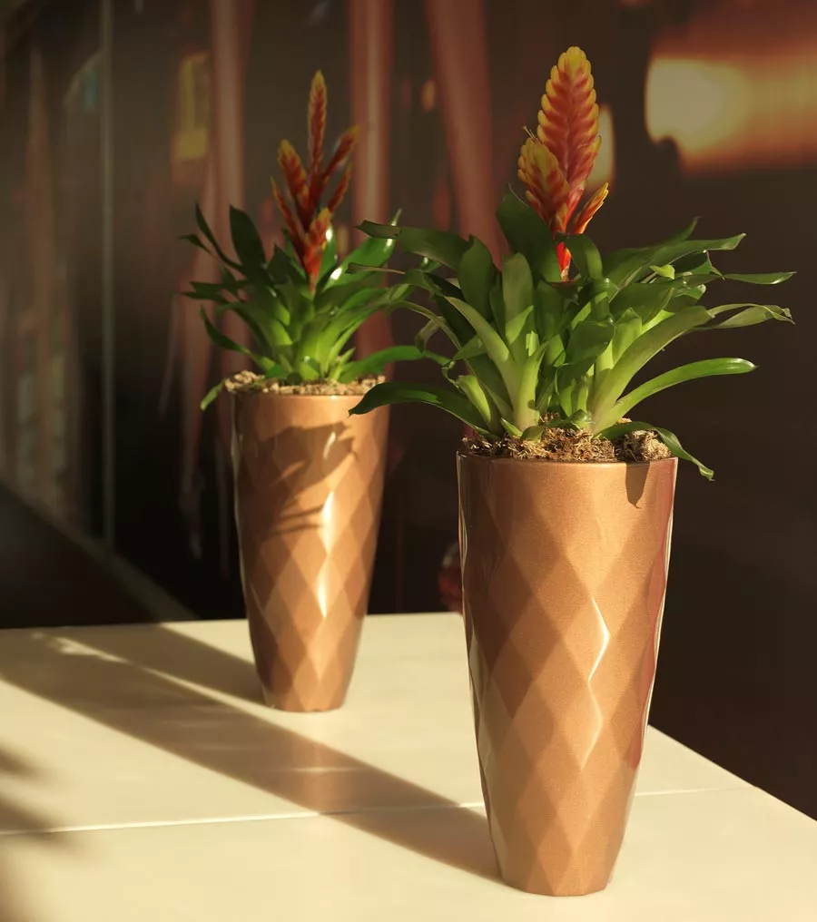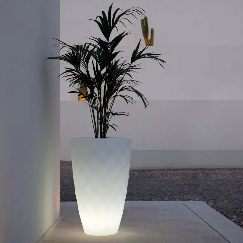 Vondom Outdoor Kollektion VASESentworfen von dem Designer JM Ferrero bietet eine breite Auswahl an beleuchteten Gartenmöbel: Lampen, Tische und Pflanzgefäße. Diese elegante Möbelstücke sind für Outdoor sowie Indoor Einsatz bestens geeignet. Funktionalität und Einzigartigkeit zeichnen diese Kollektion aus. Hoher Qualitätsgrad ist durch die Verwendung von hochwertigen Materialien, den Einsatz von Rotationsgussverfahren und der LED-Technologie gewährleistet. AUSFÜHRUNGEN Standard Verschiedene Farben, die Beleuchtung ist nicht integriert, die Oberfläche ist rau. Hochglanz Verschiedene Farben, hochglänzend lackiert die Beleuchtung ist nicht möglich, weil der Lack blickdicht ist. Maße (Ø × H) 55 × 45 cm Eigenschaften der Beleuchtungsvarianten: LED weiss (ausschließlich weiße Beleuchtung): - weiße LEDs 4000 - 4500 Kelvin- 720 - 2800 LM Max. (je nach Modell)- 16 - 72 W Max. (Modelle je nach Verfügbarkeit)- Netzgerät: 100-240 Volt / 50-6 0Hz- Energieeffizienzklasse: A- Schutzklasse: IP65 / für feuchte Bereiche geeignet.- 5 m langes, weißes Kabel LED-RGB: - Vielfarbige RGB-LEDs, 3 Weißtöne und 9 Farben (dunkelblau, hellblau, dunkelgrün, hellgrün, lila, flieder, rot, orange, gelb)- Farbwechsel durch Fernbedienung (433,92 MHz) / Reichweite: 10-15 m- 450 - 1100 LM Max. (je nach Modell)- 16 - 72 W Max. (je nach Modell)- Netzgerät: 100-240 Volt / 50-6 0Hz- Energieeffiziensklasse: A- Schutzklasse: IP65 / für feuchte Bereiche geeignet.- 5 m langes, weißes Kabel LED-RGB mit Akku: - Vielfarbige RGB-LEDs, 3 Weißtöne und 9 Farben (dunkelblau, hellblau, dunkelgrün, hellgrün, lila, flieder, rot, orange, gelb)- Farbwechsel durch Fernbedienung (433,92 MHz) / Reichweite: 10-15 m- 450 - 1100 Lumen Max. (je nach Modell)- 16 - 72 W Max. (je nach Modell)- inkl. Li-Ion-Batterie 5,2 V 19 Ah (Ladedauer: 4 Stunden, Betriebsdauer 5-6 Stunden, 500 Ladezyklen)- 19 Ah (je nach Verfügbarkeit) 12 V / 5-6 Stunden Autonomie/ Ladezeit 4 Stunden- 500 Zyklen / IN: 100-240 V AC / 50-60 Hz- Energieeffiziensklasse: A- Schutzklasse: IP65 / für feuchte Bereiche geeignet. RGB-LED mit WiFi (DMX - mit/ohne Akku): DMX ist ein digitales Steuerungsprotokoll, das in der Bühnen- und Veranstaltungstechnik zur Steuerung von der Lichttechnik eingesetzt wird. Es ermöglicht das Steuern einer oder mehrerer Leuchten über eine Steuereinheit. Für die Steuerung über WiFi ist ein Transmitter notwendig, der nicht im Lieferumfang enthalten ist. Sie haben die Möglichkeit zwischen zwei verschiedenen Transmittern zu wählen: Home WIFI DMX: Access Point über den Sie alle VONDOM Produkte mit Ihren IOS oder Android Gerät steuern können. Professional XLR DMX: XRL mit dem Sie alle VONDOM Produkte über ein Mischpult oder Computer steuern können. Sie benötigen nur einen Transmitter für die Steuerung Ihrer gesamten VONDOM Möbel, Pflanzgefäße und Leuchten.