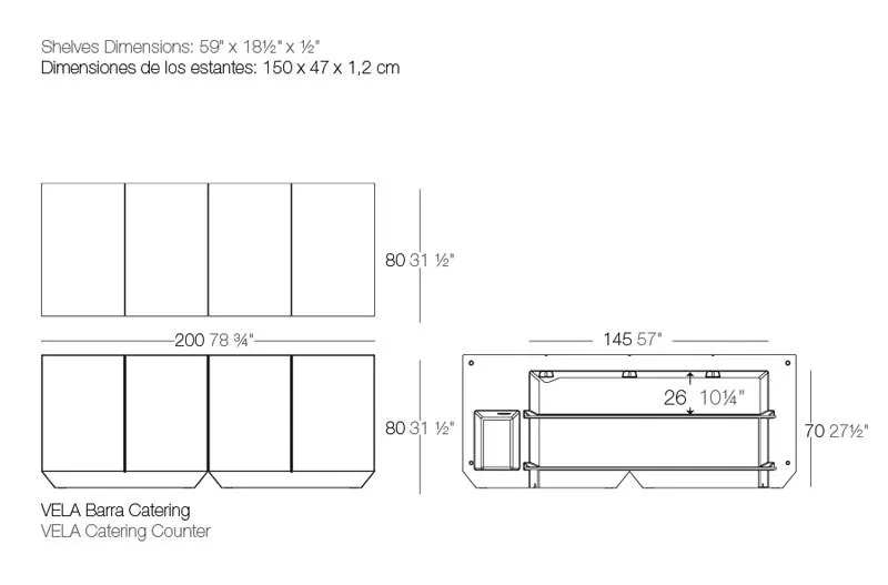 Vondom Vela Catering Bartheke 200×80 cm