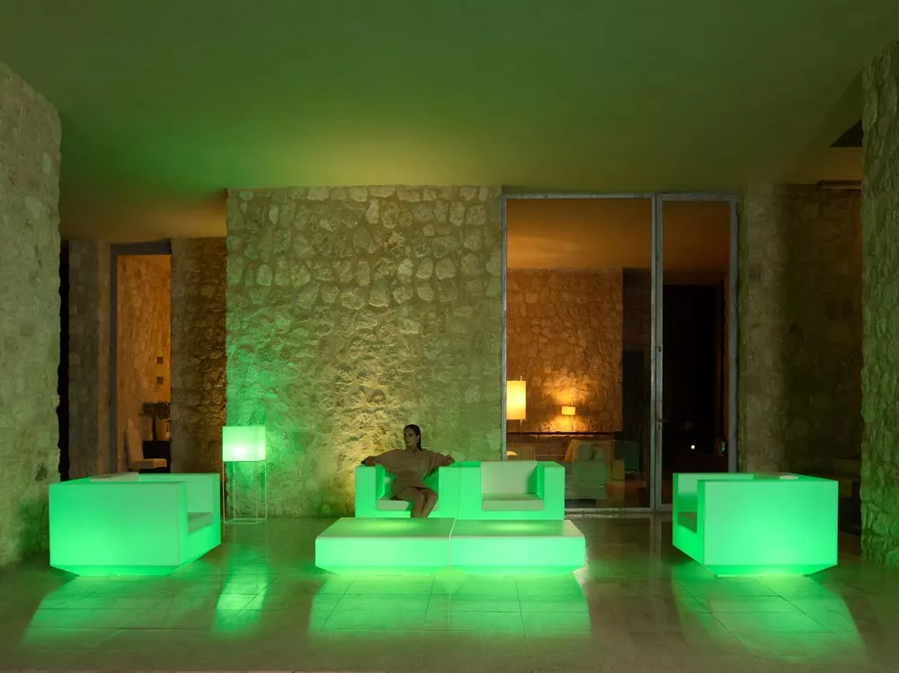 Die umfangreiche Pflanzgefäße Kollektion Vela Cubo Alto verbindet mit einer elementaren, geradlinigen Geometrie den Komfort und die Qualität in der Inneneinrichtung. Die Elemente können sich untereinander verbinden, um sich in jeden Raum zu integrieren. Wenn diese Design-Objekte beleuchtetet sind, schaffen sie die Illusion einige Zentimeter vom Boden zu schweben. Elegante Formen, die aus Polyethylen, im Rotationsgussverfahren hergestellt und dabei noch 100% recycelbar sind machen Vela Cubo Alto besonders markant in jeder Umgebung.