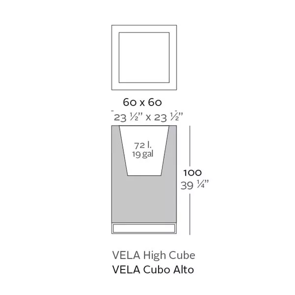 Vela Cubo Alto Pflanzgefäß ist für Exterieur und Interieur sehr gut geeignet. Das Möbelstück ist in verschiedenen Ausführungen erhältlich. Die Vela Cubo Alto Gartenaccessoires sind UV-sonnenlichtbeständig und nach der UV8 Norm geprüft. Alle Artikel dieser Kollektion können bei Bedarf einfach mit einem Hochdruckreiniger im Handumdrehen wieder sauber gemacht werden.