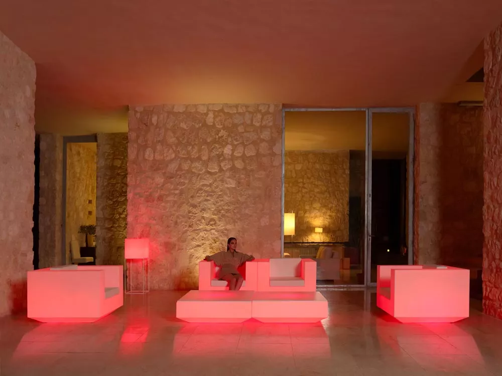 Die umfangreiche Pflanzgefäße Kollektion Vela Cubo verbindet mit einer elementaren, geradlinigen Geometrie den Komfort und die Qualität in der Inneneinrichtung. Die Elemente können sich untereinander verbinden, um sich in jeden Raum zu integrieren. Wenn diese Design-Objekte beleuchtetet sind, schaffen sie die Illusion einige Zentimeter vom Boden zu schweben. Elegante Formen, die aus Polyethylen, im Rotationsgussverfahren hergestellt und dabei noch 100% recycelbar sind machen Vela Cubo besonders markant in jeder Umgebung.