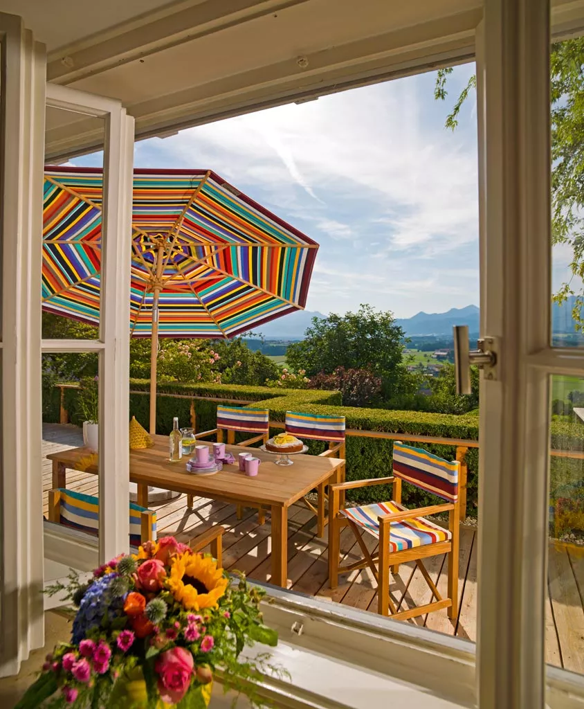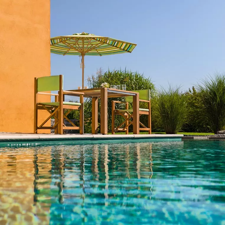 optional mit Mittelbohrung für Sonnenschirm: