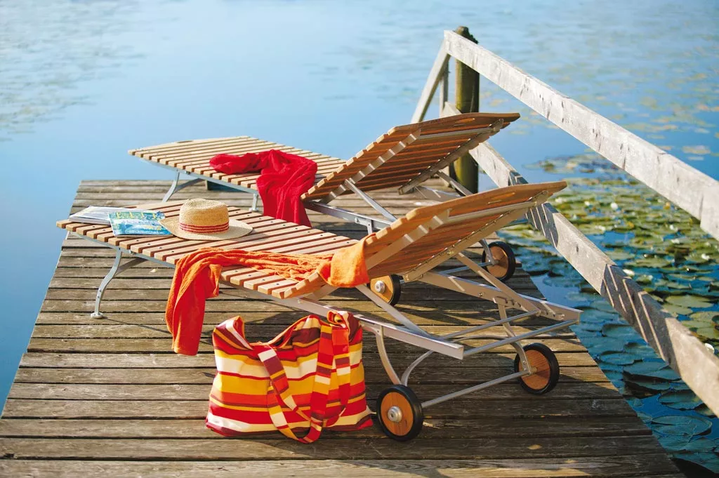 Das Classic Programm von Weishäupl ist das Ergebnis einer Entwicklung über viele Jahre hinweg. Die zeitlose Eleganz ist nie im Stil, sondern ausschließlich in der Fertigung Zeitströmungen unterworfen. Die Werkstoffe sind hochwertiger, die Technik moderner geworden. Die Harmonie der Gegensätze ist es, welche den Charme des Classic-Programms ausmacht. Die Gestelle werden aus hochwertigem, verzinktem Bandstahl gefertigt und anschließend pulverbeschichtet. Zudem werden alle Gelenke mit Zinkbuchsen ausgestattet. Nylonbodengleiter bieten den Gestellen weiteren Schutz. Die Belattung besteht aus Teak massiv und wird mittels Edelstahl-Schoßschrauben und selbst sichernden Edelstahl-Muttern mit den Gestellen verschraubt. In Teak & Thermoesche erhältlich.