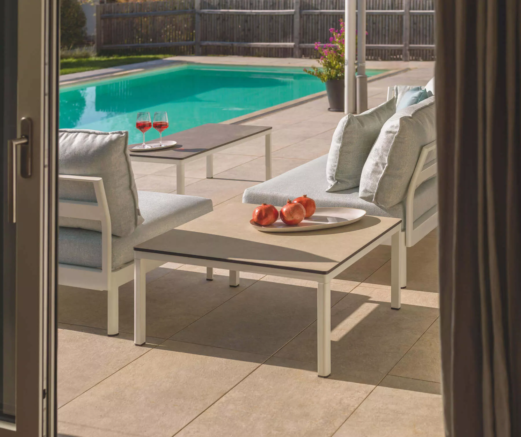Die Kollektion MINU lädt aktiv zum Mitgestalten ein. Einer-, Zweier- oder Dreier-Polsterelemente fungieren als Baukastensystem und lassen sich beliebig kombinieren. Die Gestelle bestehen aus pulverbeschichtetem Aluminium. Wer mag, wählt sie mit oder ohne Seitenlehne, die Anzahl der Rückenpolster je nach Vorliebe und Komfort. Das Tablett zum Einhängen bieten wir mit einer Einlage aus Filz, Teak oder HPL an, Tische in unterschiedlichen Größen und Ausführungen machen den Outdoor-Lounge-Look perfekt. Machen Sie es wie wir: werden Sie kreativ!