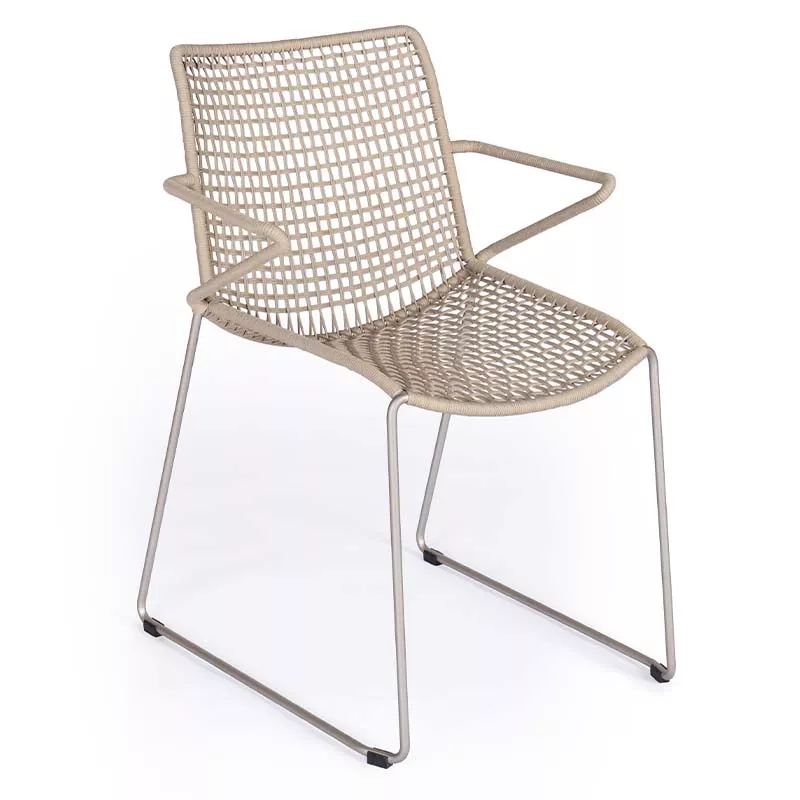 Weishäupl Slope Gartenstuhl | stapelbarFast schwebend, fragil erscheinend, sind Stühle, Armlehnstühle und Loungesessel dieses Möbelprogramms enorm stabil und sowohl für den Einsatz im privaten wie gewerblichen Bereich geeignet. Die Gestelle aller Sitzmöbel bestehen aus glasperlengestrahltem Edelstahl und werden mit Schnüren aus UV-beständigem Polypropylen, in den Farben taupe oder schwarz, beflochten. Die sehr gelungene Ergonomie der Gestelle, in Kombination mit dem Geflecht, gewährleisten höchsten Sitzkomfort. Alle Sitzmöbel sind stapelbar, wetterfest und pflegeleicht. Die passenden Tische der Serie SLOPE sind sowohl mit Beinen aus geschliffenem Edelstahl wie auch aus Teakholz erhältlich. Wetterfeste Tischplatten sind wahlweise in HPL oder massivem Teak lieferbar. Die Gartenmöbel-Kollektion Weishäupl Slope besticht durch klare Formen in Verbindung mit erstklassigen Materialien, die Slope seinen zeitlosen, geradlinigen Charakter verleihen. Das handwerklich gearbeitete Edelstahlgestell wird durch Kunstoffgeflecht in Sand oder Schwarz ergänzt. Die Polsterbezüge aus dem bewährten Polyacrylgewebe sind in einer breiten Farbpalette erhältlich. Slope kann durch verschiedene Elemente zu einem Ensemble angeordnet werden. Slope eignet sich hervorragend für den Innen- und Außenbereich im privaten wie öffentlichen Raum. Ob Wohnzimmer, Hotel-Lobby oder Terrasse – Slope passt sich perfekt verschiedenen Umgebungen an. Hochwertiger Edelstahl Polster mit Acrylstoff Bezug Ganzjährig wetterfest Leicht zu reinigen stapelbar Maße (B × T × H): 53 × 65 × 83 cm Sitzhöhe: 45 cm Gestell: Edelstahl Sitz- und Rücken: Bespannung aus Kordelgeflecht Sand, Moos, Schwarz Gewicht: 6 kg